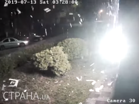 Камеры наружного наблюдения зафиксировали момент выстрела в здание телеканала "112 Украина".