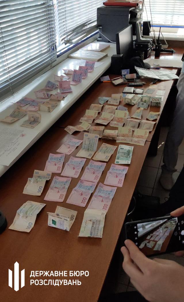 В результате обыска были изъяты денежные средства, которые находились у задержанного и в его служебном кабинете в размере 14700 грн., 300 долларов США, 2500 российских рублей. В автомобиле, который использовался задержанным, изъяли 174400 грн., 8500 долларов США, 1500 евро, 10600 российских рублей.