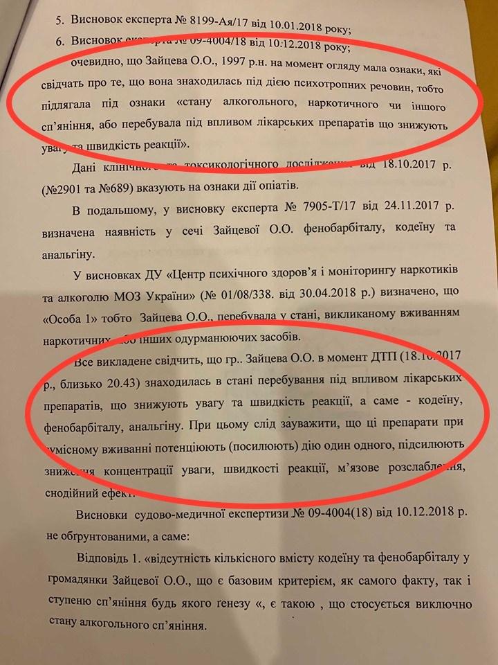 "Помните экспертов Харьковского областного бюро судебно-медицинских экспертиз, которые с двух раз не смогли определить, находилась ли Зайцева в состоянии наркотического опьянения? Так вот, им труба.