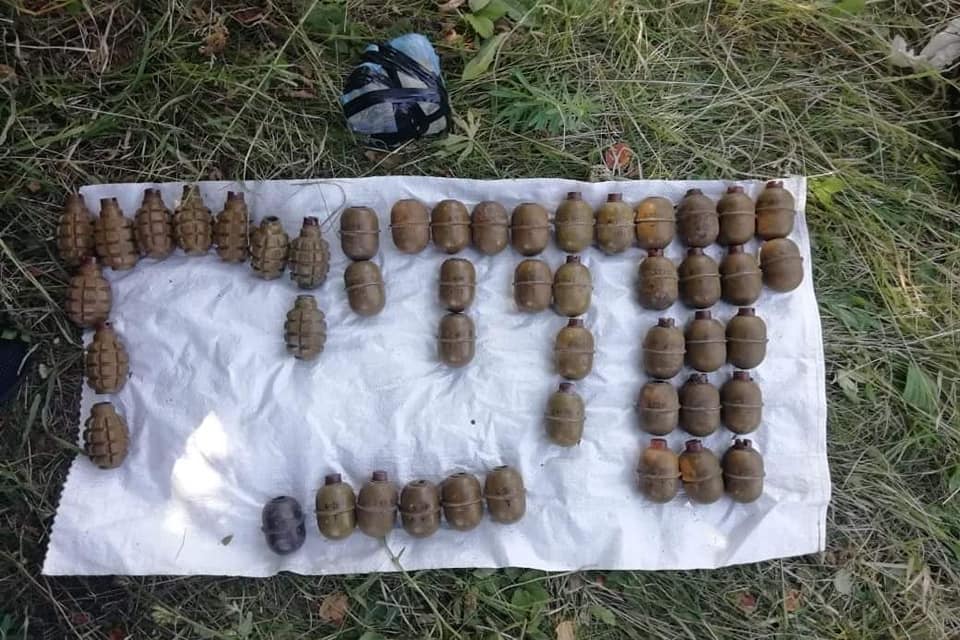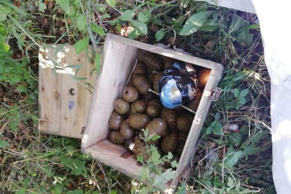 В ходе обследования местности вблизи с. Айдар-Николаевка полицейские совместно с военнослужащими ВСУ обнаружили деревянный ящик с 48 гранатами (Ф-1, РГД-5) и пластидом приблизительным весом 800 грамм.