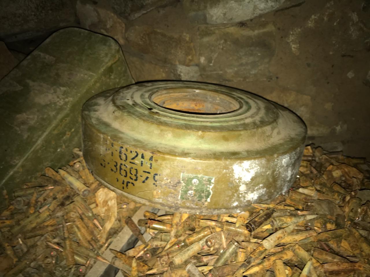 Другой схрон обезврежен в селе Дача Бахмутского района Донецкой области, в бывшем месте дислокации так называемого «1 АК народной милиции ДНР». В тайнике в заброшенном доме террористы заложили противотанковую мину, два снаряда к пушке и около 4 тысяч патронов различных калибров.