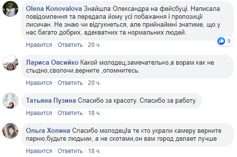 В комментариях к посту горожане отметили, что у художника, очевидно, останутся не самые хорошие воспоминания о Лисичанске. Некоторые пользователи предложили организовать сбор денег, чтобы компенсировать Корбану стоимость украденной камеры.