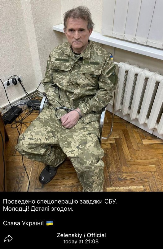 Народный депутат от партии "Оппозиционная платформа - за жизнь" Виктор Медведчук задержан.