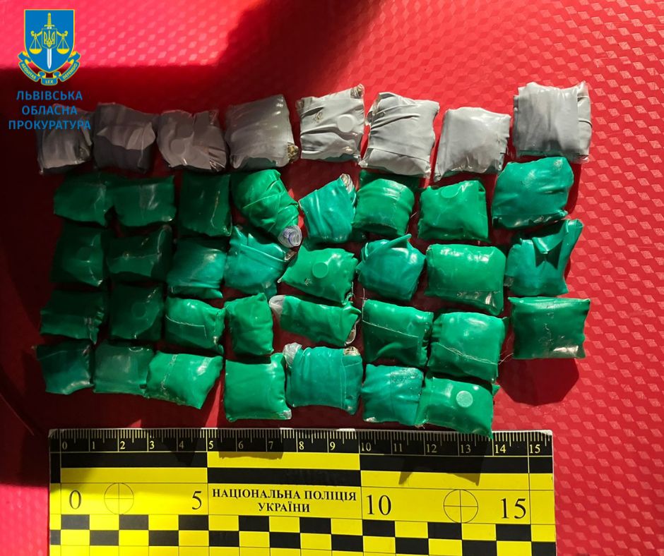 Северодончанин делал закладки с наркотиками на территории Сыховского района Львова. При задержании у него были обнаружены и изъяты 40 расфасованных свертков с измельченным веществом зеленого цвета растительного происхождения.