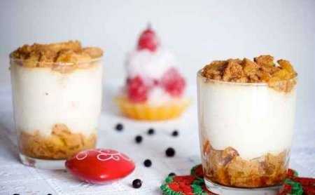 Когда сахар расплавится и примет коричневый цвет, добавить подогретые сливки (100 мл) и оставить еще на несколько минут до образования карамели. Добавить яблоки и перемешать, чтобы они покрылись карамелью. Готовый рис перемолоть в крем в блендере или комбайне, до кремообразного состояния. Добавить оставшиеся 100 мл сливок. Если крем получится слишком густой, добавьте немного молока, чтобы получить нужную консистенцию.