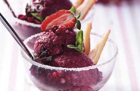 3. Замороженные фрукты помещаются в кухонный комбайн или блендер с лимонным соком, половиной горячего сиропа, водкой. Измельчить. Осторожно добавьте взбитые белки и перемешать с помощью мешалки.