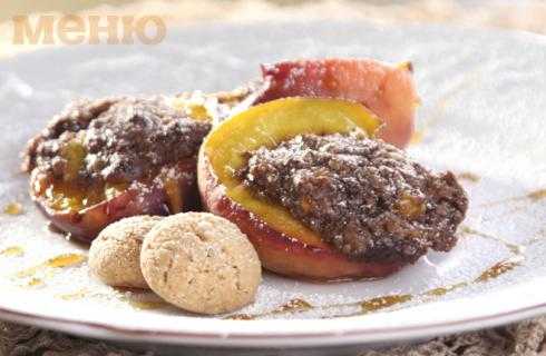 3. Персик заполняют смесью и поставить жариться в духовке при 190 ° С в течение 20 минут или до золотистого цвета.