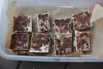 4. Готовый десерт разрезать на квадраты (почти как брикеты мороженого). Угощение готово! (Но нужно учесть, что тает оно быстро как во рту, так и на столе от ожидания…)