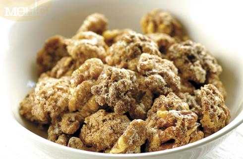 2.Смешать соль, сахар и корицу. Орехи, смочить в яичном белки и обвалять в сахарной смеси. Выпекать при температуре 150 ° С в течение примерно 30 минут, периодически помешивая.