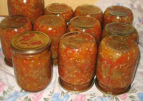 Всю овощную массу сложить в стерилизованные сухие банки и закатать. Банки перевернуть и укутать до полного остывания.