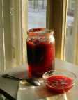 Воду слить через дуршлаг. Приготовить сахарный сироп, всыпать туда ягоды и варить до готовности. Разложить по сухим банкам. Для улучшения вкуса можно добавить гвоздику, цедру лимона.