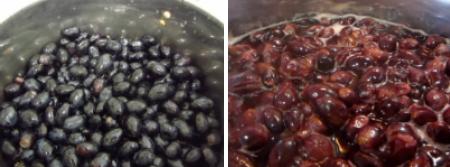 Спелые ягоды также отделяем от кисточки и тщательно его промываем в холодной воде. При необходимости промываем ягоды еще раз. Чистый виноград высыпаем в кастрюлю и заливаем его холодной водой, слегка покрыв ягоды. Ставим кастрюлю на плиту и доводим до кипения. Не забывайте содержимое периодически помешивать и по возможности собирать пену. Варим виноград от 5 до 20 минут, все зависит от сорта. Если виноград быстро отдает сок, долго кипятить его не стоит. Далее, не выключая огонь, в горячем виде разливаем сок по стерильным 3-литровым банкам, вместе с содержимым. Но перед этим в каждую банку высыпаем по полстакана сахара (100 г) и 1/3 чайной ложки лимонной кислоты. Для данного способа приготовления сока сахар можно не добавлять вообще или добавить больше предложенного, все зависит от сорта. Заполненные банки закатываем, переворачиваем и в таком положении оставляем до полного остывания. Сок получается концентрированный, очень вкусный и полезный.