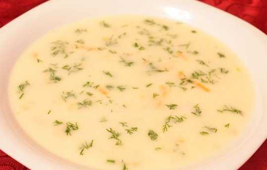 Прогреть, не доведя до кипения, посыпать рубленой зеленью. Подать с сыром.
