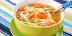 Положить в кастрюлю грудку и лук, залить холодной водой и варить до закипания. Снять пену, убавить огонь и варить 1-1,5 часа.