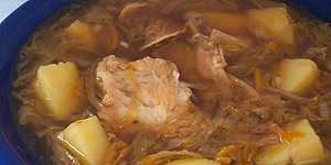 Кислые щи - это тот случай, когда первое блюдо мы начинаем не с варки бульона, а с подготовки капусты. Конечно, если бы у нас была печь, то это было бы не актуально. Ведь у нас была бы возможность оставить горшок со щами в остывающей печи на полдня, а уж он там потомится, ароматами напитается.