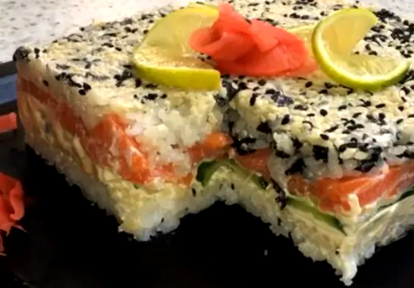 Если вы любите роллы, но не хотите с ними возится или у вас просто не получается их скручивать и порционно нарезать, то этот рецепт именно для вас. Сегодня мы научимся готовить необычный салат, похожий по вкусу на настоящие суши, готовить который быстрее и легче.