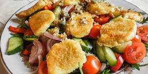 Салат с жареным сыром халлуми