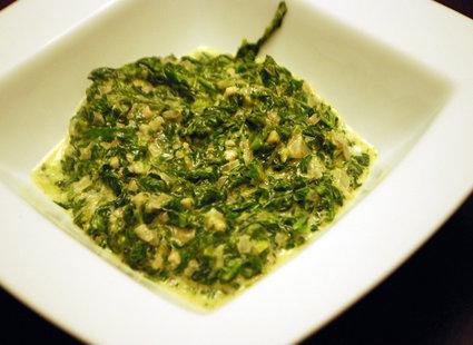 - Шпинат со сливками, удалите с огня, положите на тарелку и попробуйте - это вкусно! Подавать его можно, как основное блюдо или смешивать с лапшой.