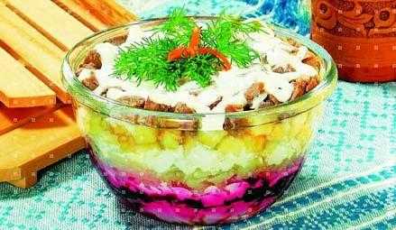 Залить верхний слой майонезом и дать настояться салату 20-30 минут.