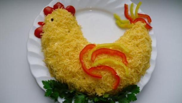 Праздничный салат "Петушок" - отличный вариант для оформления Новогоднего стола! Яркий и оригинальный, сытный и очень вкусный - он будет пользоваться особой популярностью среди гостей.