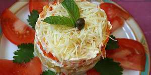 Готовую рыбу вытащить от кастрюли, остудить и разделать на мелкие кусочки. Поставить на тарелку кольцо и выложить рыбу первым слоем.