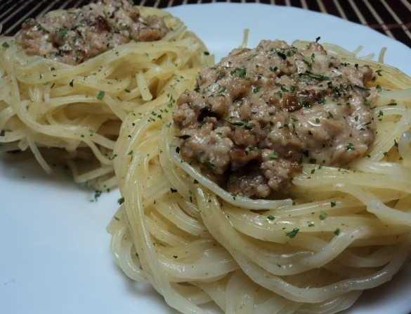 «Гнезда» из макарон с начинкой — вкусное, сытное и красивое блюдо! Причем, начинка может быть абсолютно любой: грибы, морепродукты, тушеные овощи, мясной фарш...