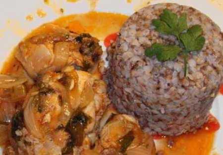 И так приступаем,, курочку чистим, моем и разделываем на куски. В глубокую кастрюлю наливаем воды и варим курочку 10-15 минут (уровень воды на 3-4 пальца выше курочки). Достаем мясо, бульон сохранить! В той же кастрюле, на растения. масле поджариваем куски курицы. Затем бросаем туда толсто нарезанный лук и мелко нарезанный чеснок. 2-3 минуты позже добавляем томатную пасту или помидоры, наливаем куриный бульон, добавляем лавровый лист, хмели-сунели (можно заменить его карие), солим. Варим на медленном огне. В конце добавляем кинзу, петрушку и перец.