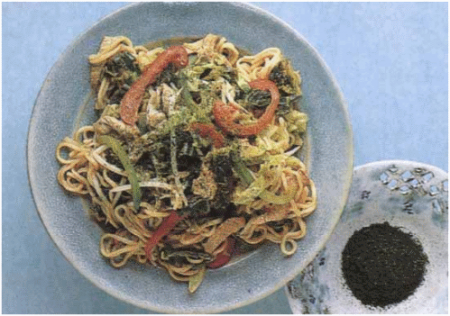 20 мл (4 чайные ложки) водоросли или норе для украшения блюда (по желанию) Для приправы: 60 мл (4 столовые ложки) вустерширского соуса 15 мл (1 столовая ложка) соевого соуса 15 мл (1 столовая ложка) белого соуса с устрицами 15 мл (1 столовая ложка) сахара 2,5 мл (1/2 чайной ложки) соли.