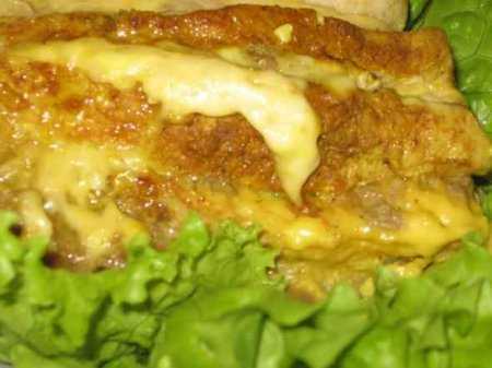 Натереть мясо солью и вынести в холодное место на 30 минут. Обсыпать со всех сторон наш кусок карри. С помощью ножа делаем надрезы, в которые должен поместиться сыр. Режем кусочками в полсантиметра сыр. Сыр размещаем в надрезы в мясе. Заворачиваем в фольгу. и запекаем полтора часа при 190 * С.