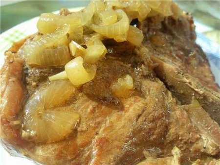 Духовку разогреть до 190 гр. Мясо осушить, обжарить на (сильно разогретой) сковороде (слегка). Лук нарезать , добавить к мясу и обжарить до прозрачности. Залить водой (или бульоном), довести до кипения. Добавить мед, имбирь, тимьян, неочищенный чеснок, посолить, поперчить. Поставить в духовку (накрыв крышкой) и томить 2 часа. Оглянитесь, чтобы жидкость не испарилась.
