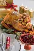 Обработанную курицу промыть, обсушить и через разрез в брюшке нафаршировать фаршем с клюквой.
