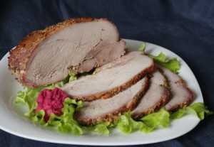 Готовое мясо немного остудить и нарезать порционными кусочками.