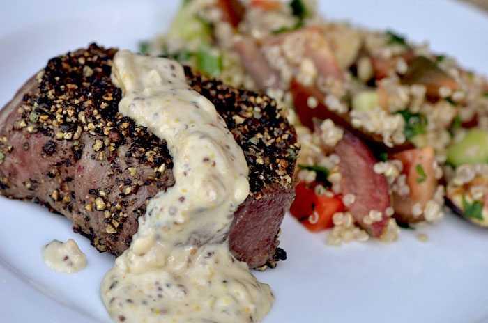 Затем перевернуть мясо и обжаривать столько же с другой. Разогреть духовку до 200 градусов, переложить мясо в противень и поставить на 4-5 минут в духовку. Затем достать и дать 3 минуты отдохнуть.