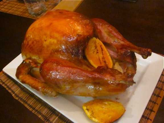 надрезы и нашпиговать чесноком. Индейку посолить и поперчить со всех сторон.