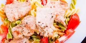 Смешать отваренные фузилли, мясо и помидоры и подавать гостям, принимая комплименты и восторженные отзывы.