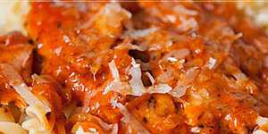 Добавить специй по вкусу - соус готов. Разложить макароны по тарелкам, полить соусом, посыпать тертым пармезаном и подать к столу.