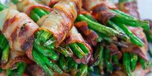Готовьте на мангале, гриле или сковороде-гриль, переворачивая вязанки фасоли тогда, когда грудинка дойдет до нужной кондиции. Подавайте в качестве горячей закуски, чтобы скрасить ожидание основного блюда.