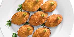 Разогрейте в глубокой сковороде растительное масло и обжарьте до готовности со всех сторон. Переложите на бумажную салфетку, чтобы убрать излишек масла, посыпьте рубленой свежей зеленью. В качестве гарнира можете подать прогретые со сливочным маслом овощи.
