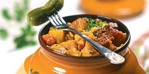 Выложить в форму или горшочек, слой картофеля, слой заливки, ребрышки, слой моркови, слой заливки.
