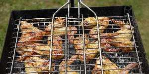 Через 2 часа крылышки замаринуются. Выкладываем на решетку гриль или нанизываем на шампуры. Жарим над раскалёнными углями, постоянно переворачивая.