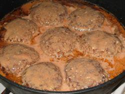 Смешиваем овощи с фаршем (по желанию, можно овощи немного обжарить), добавляем рис, соль, перец, специи по вкусу. В список ингредиентов добавляем 1-2 куриных яйца, еще понадобится немного муки. После того как мы приготовили «кашу» из всех ингредиентов, формируем из получившейся «каши» что-то вроде шницелей или котлет продолговатой формы. Эти относительно «ленивые голубцы» можно пожарить на сковороде, так и запечь в духовом шкафу или в мультиварке. Предварительно, конечно же, смазываем жиром или маслом огнеупорную форму.