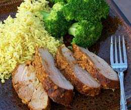 Положите свинину на противень, застеленный фольгой и готовьте 30 минут в духовке, разогретой до 190 градусов. Перед подачей дайте свинине постоять 5 минут.