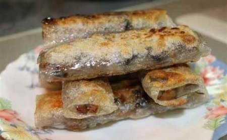 Грибы помыть, почистить, мелко порубить (если используете шитаки, то их необходимо залить кипятком) Обжарить на растительном масле. Добавить мелко нарезанный лук. Рисовый бумагу положить на ровную поверхность. С двух сторон смочить водой. Подождать пару минут. Выложить начинку и плотно свернуть рулетиком. Обжарить на растительном масле с двух сторон до образования золотистой корочки. Выложить рулетики на бумажное полотенце, для того, чтобы убрать лишний жир. Хорошо сочетается с свежими овощами и сметанным соусом. Начинка для блинов может быть разная: грибы, мясо, картофель, капуста. Приятного аппетита!