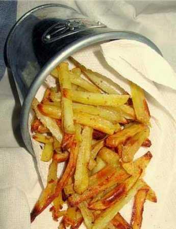 Взбить белки с солью в глубокой миске. Картофель очистить, нарезать соломкой, обмокнуть в белки. Выложить на противень и запекать при 200 градусах до золотистого цвета. Перед подачей приправить специями по вкусу. Вот и все - можно наслаждаться любимой картошечкой.