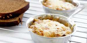 Соединить белый соус и грибы с луком, перемешать, прогреть, посолить по вкусу. В форму для запекания выложить грибную смесь.