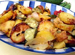 Бриами - означает жареный цуккини с картофелем по-гречески, заправленный как правило оливковым маслом. Вкусное летнее блюдо, часто подаваемое в греческих домах.