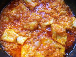 Приготовить соус: томатный сок смешать с выдавленным чесноком, черным перцем, солью, укропом, тмином. Залить рыбу с овощами соусом о поставить тушитися под крышкой на медленном огне 40 минут.