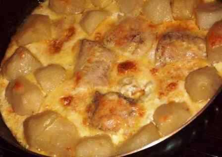 4. Залить соусом рыбу с картофелем и поставить в духовку, нагретую до 180 ? С на 15-25 минут.