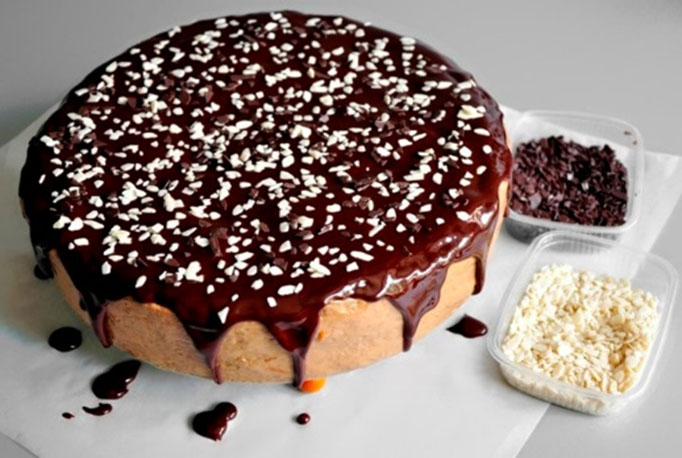 Декорировать изделие нужно шоколадной посыпкой, необходимы форма с диаметром 26 сантиметров, кусок пищевой пленки и пергамента.