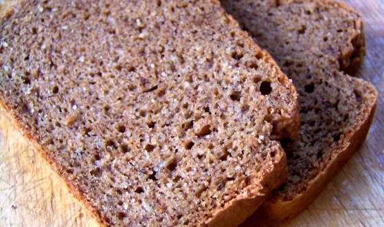 3. Выпекать примерно 35 минут. Готовность следует проверять деревянной палочкой (или зубочисткой). Она должна “выходить” сухой после тестирования в середине буханки. Дать остыть и разрезать.